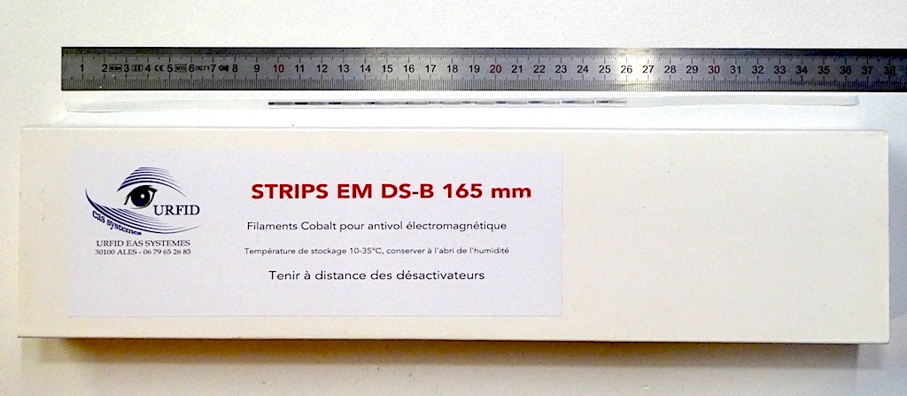 Ces marqueurs sont des fils à forte perméabilité magnétique, bandes adhésives de 16 cm de long, faciles à coller entre deux pages, au plus près de la reliure, ou à l'intérieur du dos du livre, le rendant quasiment inarrachable.Toujours placer le plus grand modèle possible, les bandelettes de 12 cm ne sont pas recommandées, il est même possible d'en mettre deux dans les livres importants.